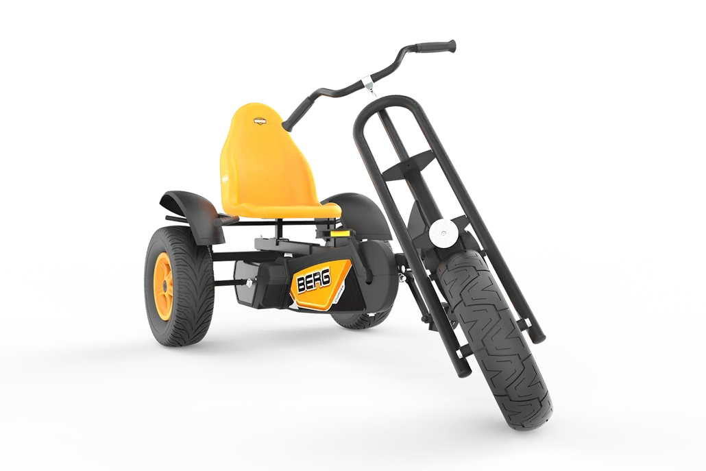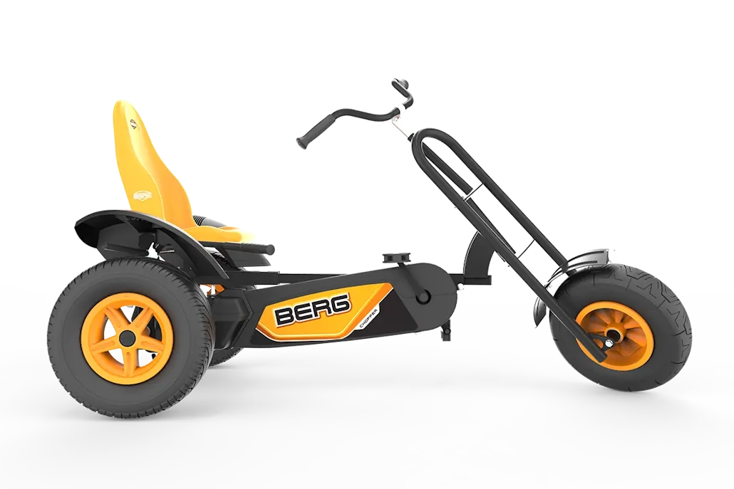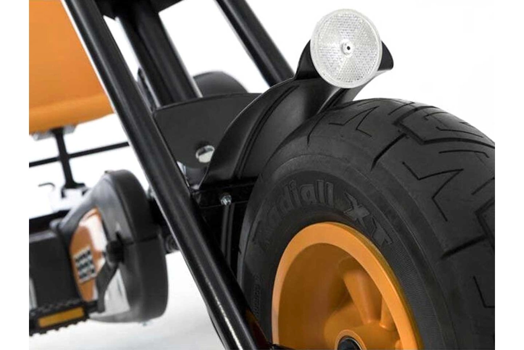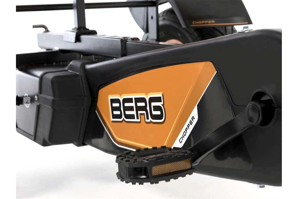 Dieses beeindruckende Trike von BERG ist ein echter Blickfang und bietet ein einzigartiges Fahrerlebnis für alle ab 5 Jahren. Mit seinem robusten Design und der auffälligen schwarz-orangen Farbgebung zieht der Chopper alle Blicke auf sich. Selbstverständlich kann der tolle Chopper technisch mit den Gokarts mit vier Rädern absolut mithalten. Auch hier ist das bewährte BFR-Sysytem im Einsatz, d. h. man kann vorwärts treten, kann das Gokart einfach rollen lassen und nach dem Abbremsen des Gokarts rückwärts fahren, ohne dafür noch zusätzlich umzuschalten.